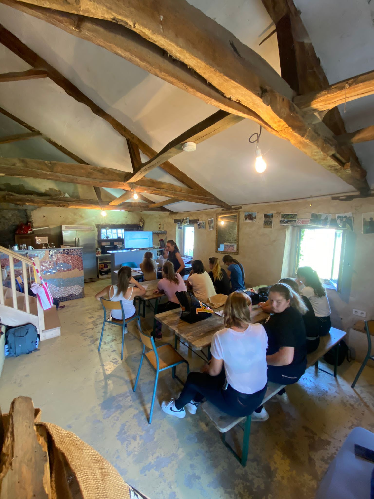 Le Club House, qui sert aussi de salle de cours, et son aire de pique-nique ombragée.