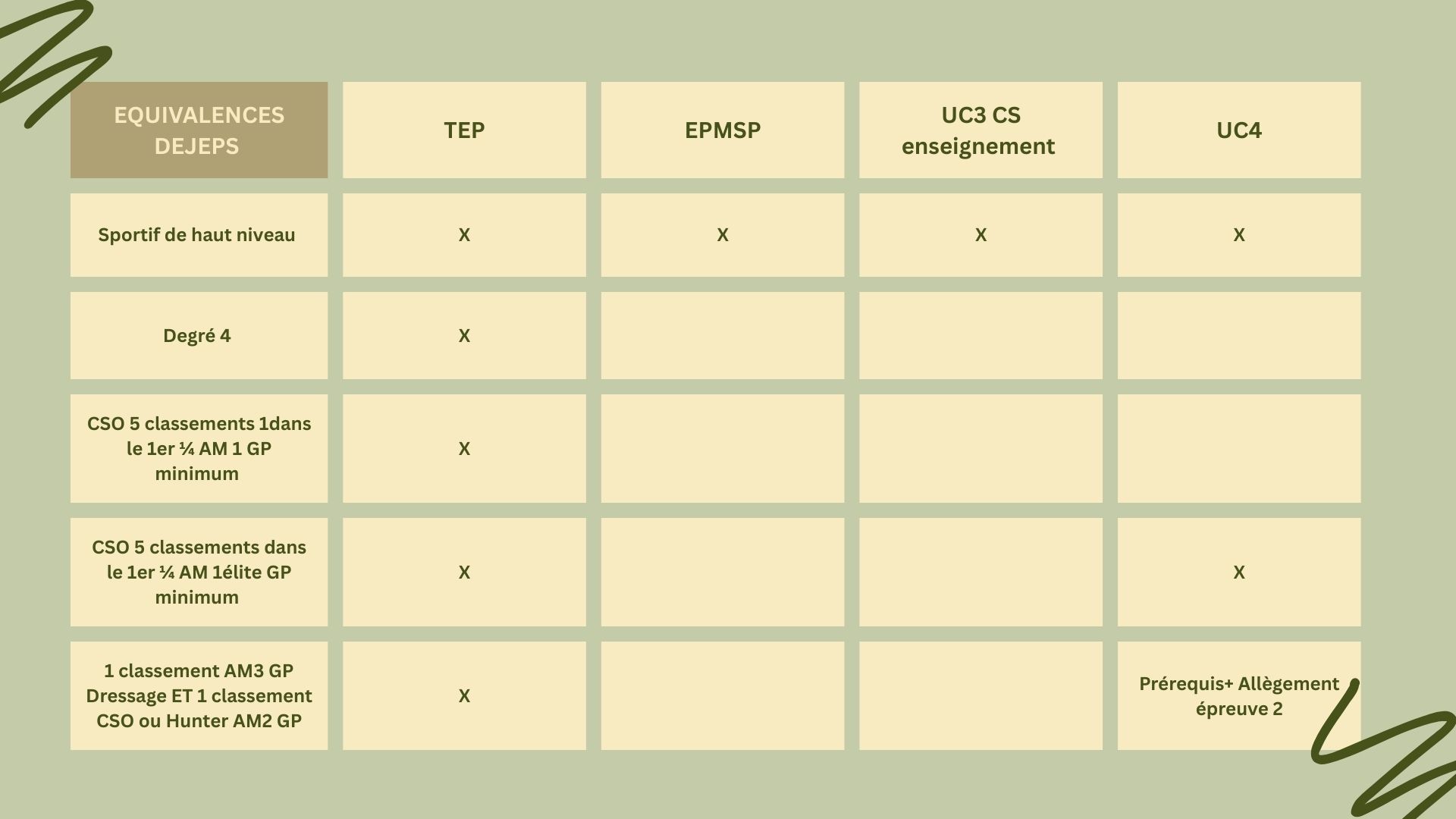 Equivalences permettant l'allègement d'unités capitalisables du DEJEPS